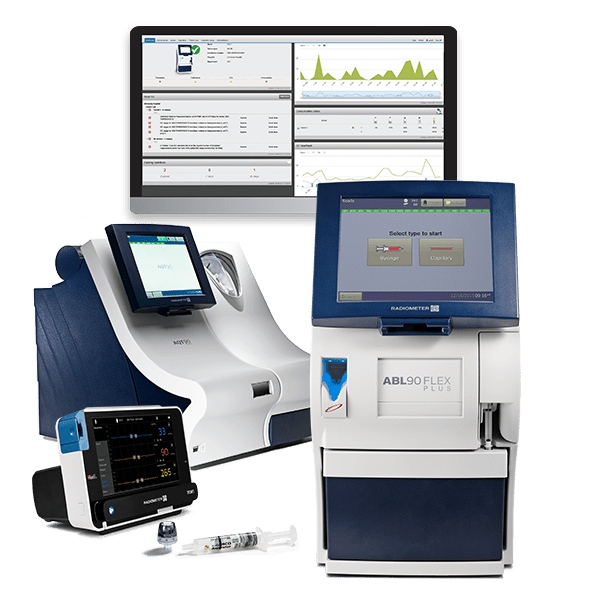 In addition to 19 critical blood gas parameters and 9 biomarkers, Radiometer offers seamlessly connected blood testing analysers, transcutaneous monitors, and a point-of-care IT solution that automate and simplify blood sampling and data capture with: