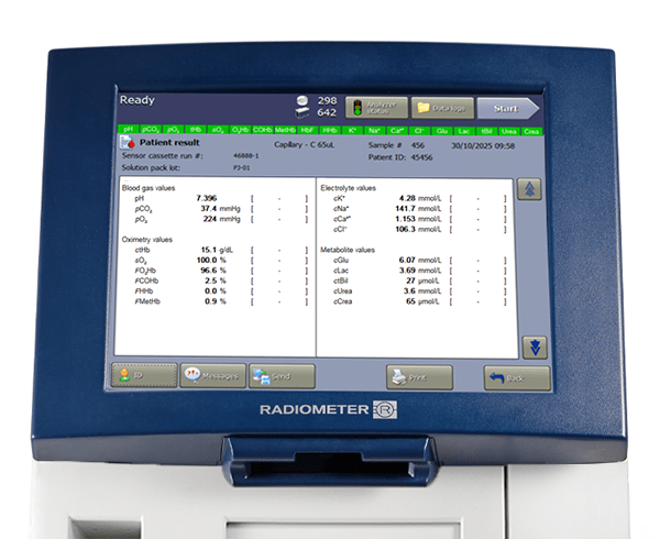 With the ABL90 FLEX PLUS blood gas analyser, you can add creatinine, urea, and eGFR to your emergency panel using only 65 μL of whole blood and receive 19 results within 35 seconds.